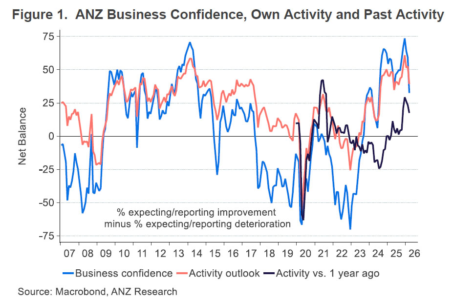 Business confidence in New Zealand deteriorated sharply in March, with the ANZ Business Confidence Index falling from 59.2 to 32.5 as geopolitical tensions disrupted the recovery narrative. The decline was most pronounced in responses late in the month, which averaged -23, highlighting the extent to which sentiment has deteriorated as uncertainty grows in the wake of the escalation in the Middle East.