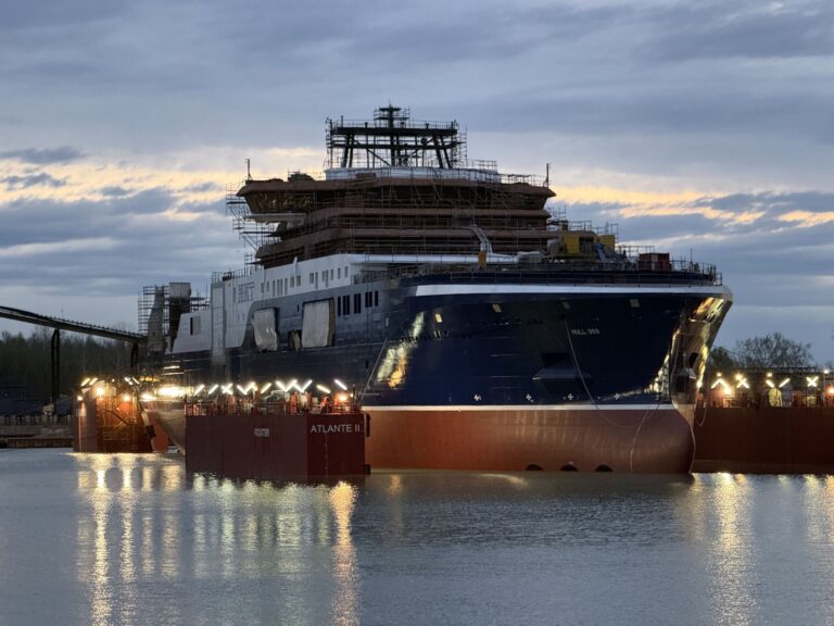 The hull of NKT’s new cable laying vessel (CLV) NKT Eleonora has been launched into the water at Vard’s shipyard in Tulcea, Romania.