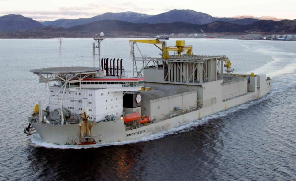 The filter bed rocks are loaded in Norway and transported to the OranjeWind site, where Simon Stephen will place them in their designated locations using a vertical drop pipe.